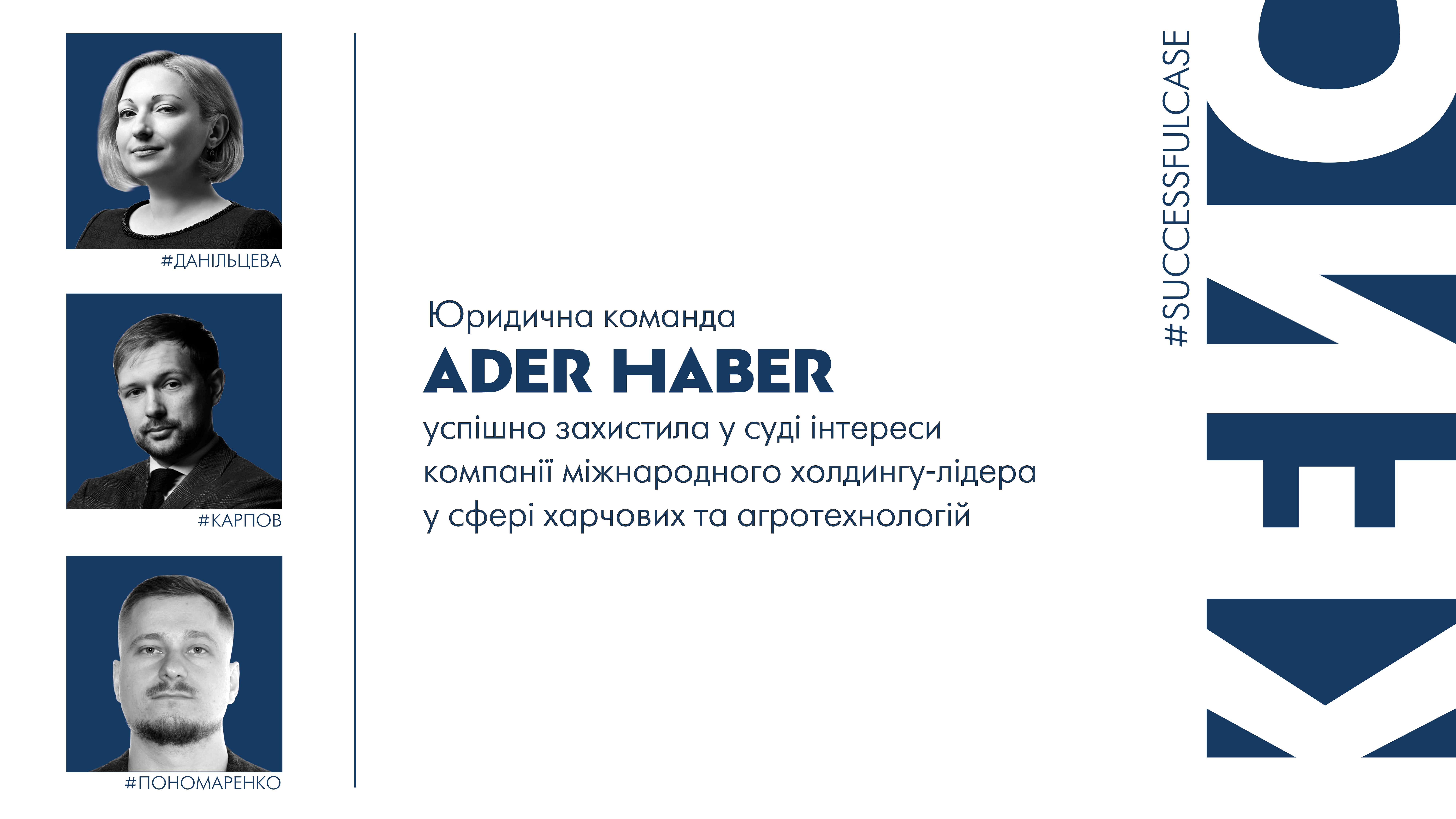 The ADER HABER Law Firm litigation team, which included partner Tetiana Daniltseva, counsel Stanislav Karpov and associate Vadym Ponomarenko worked on the project.